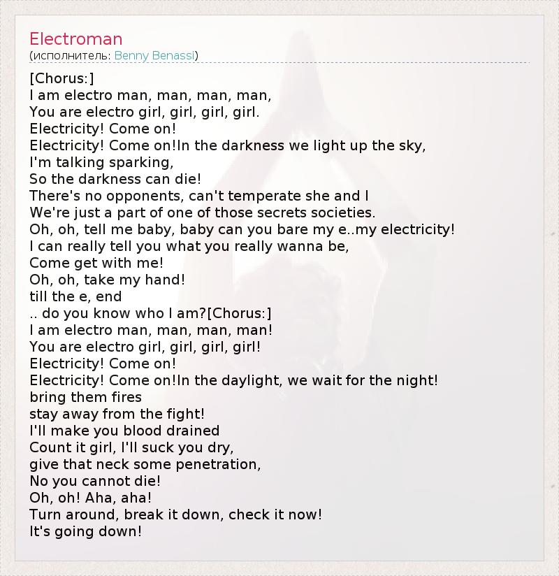 Oh, oh, tell me baby, baby can you bare my e..my electricity!