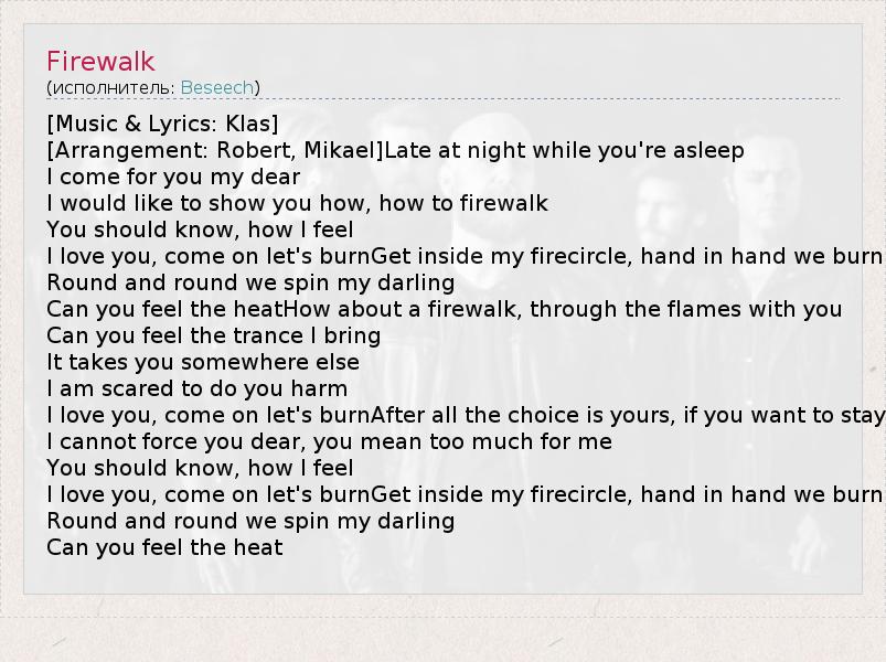 I love you, come on let's burnGet inside my firecircle, hand in hand we burn