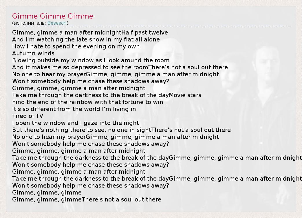А как ты думаешь, о чем песня "Gimme Gimme Gimme" ?