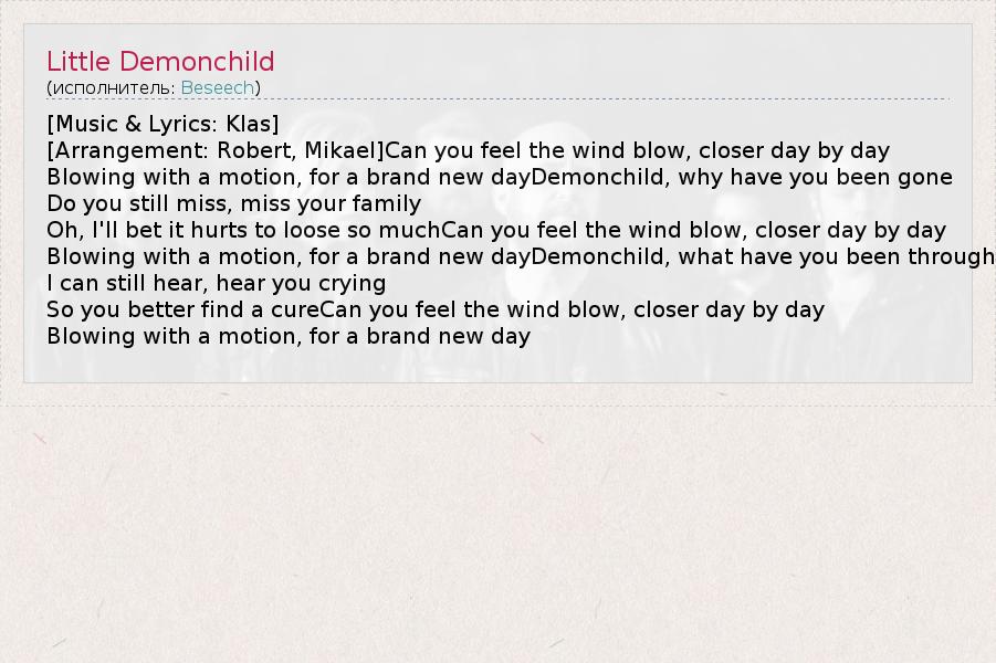 А как ты думаешь, о чем песня "Little Demonchild" ?