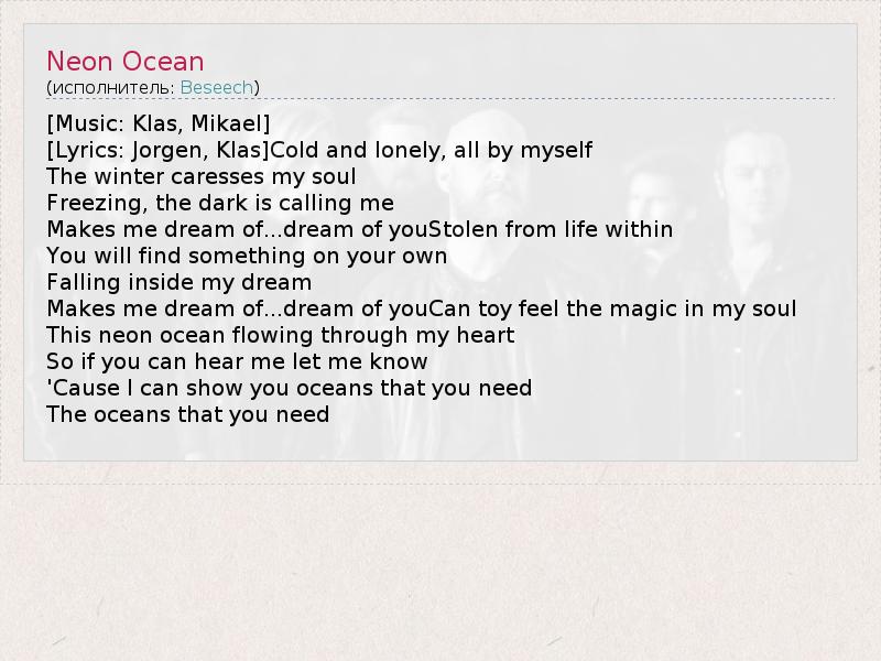 А как ты думаешь, о чем песня "Neon Ocean" ?
