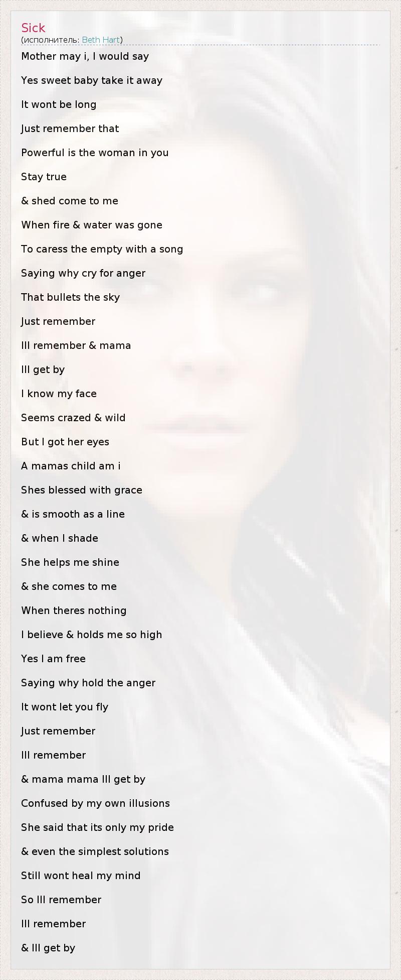 Это интересно:Бет Харт (Beth Hart) родилась в Лос-Анджелесе в 1972 году. Игре на фоно научилась очень рано, бросила играть классику для других, бросила среднюю школу и ушла с головой в написание песен и музыки для себя. Пела в ночных клубах, училась в "Академии исскуств", пришлось уйти из-за пропусков, познакомилась с басистом Tal Herzberg и гитаристом Jimmy Khoury, они и составили основу ее первой группы. Играли несколько... продолжение