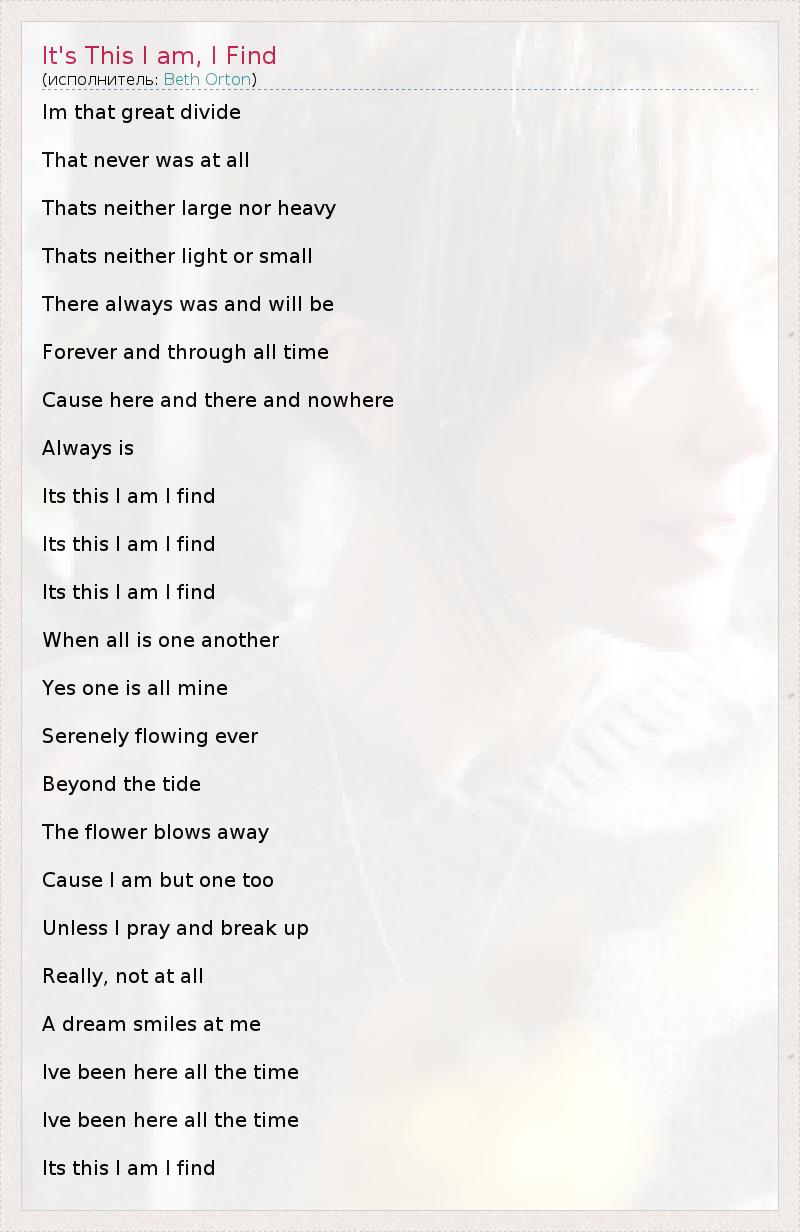 ГлавнаяИсполнителиBeth OrtonIt's This I am, I Find
