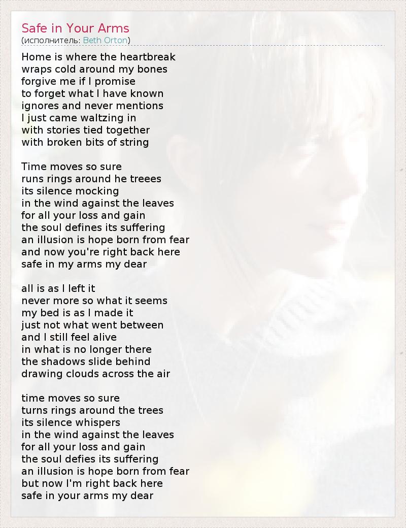 А как ты думаешь, о чем песня "Safe in Your Arms" ?