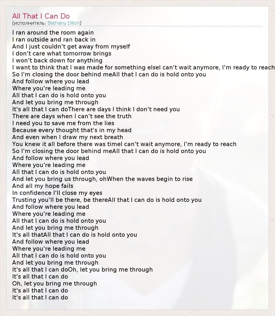 А как ты думаешь, о чем песня "All That I Can Do" ?