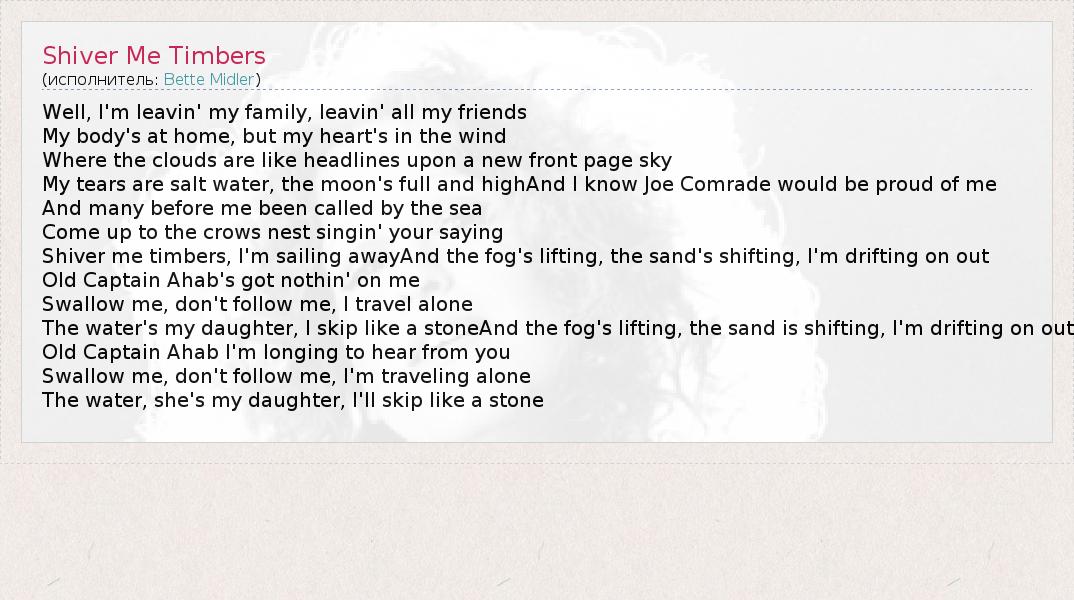 А как ты думаешь, о чем песня "Shiver Me Timbers" ?
