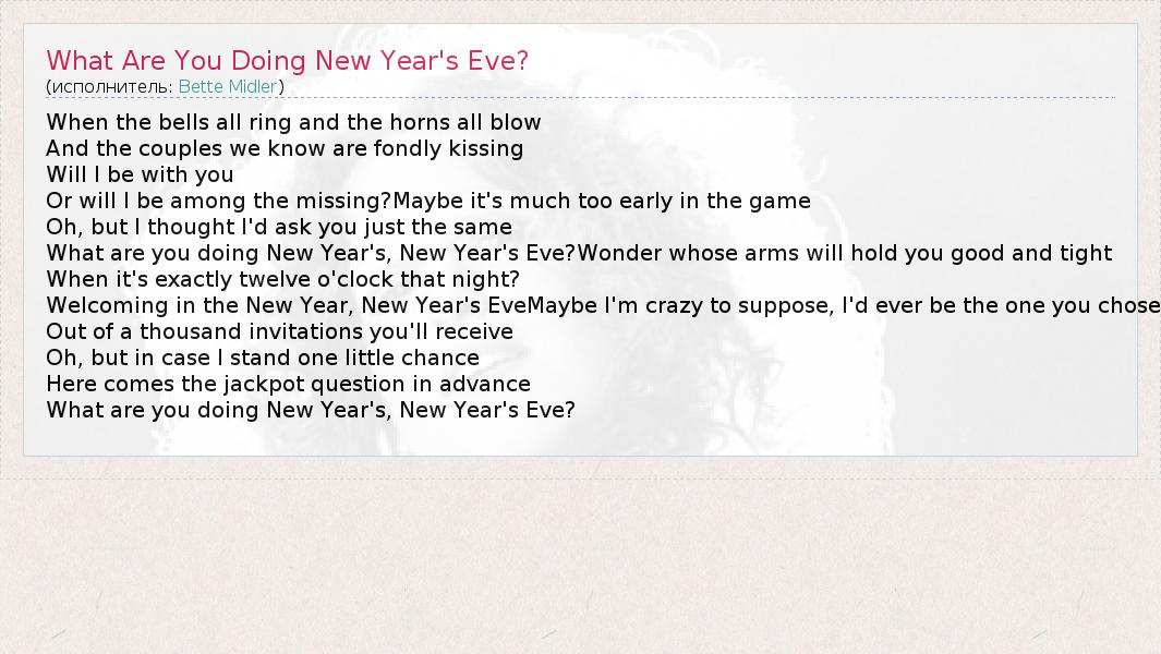 А как ты думаешь, о чем песня "What Are You Doing New Year's Eve?" ?