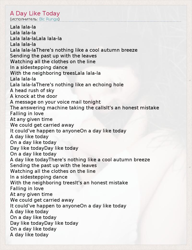 А как ты думаешь, о чем песня "A Day Like Today" ?