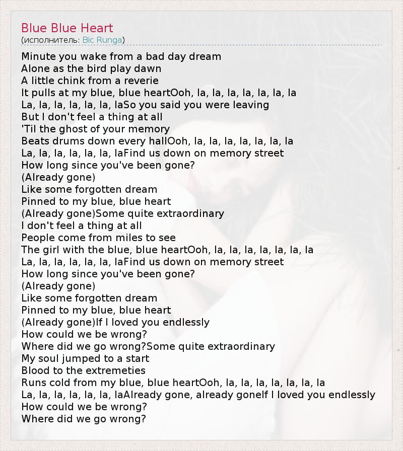 А как ты думаешь, о чем песня "Blue Blue Heart" ?