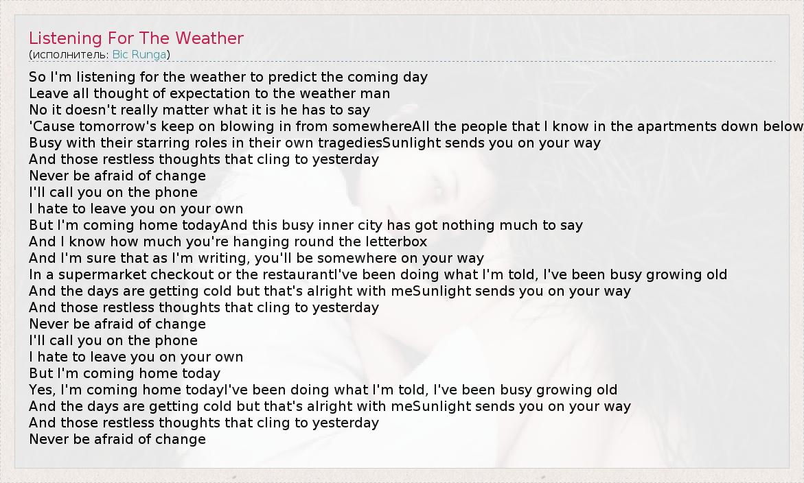 ГлавнаяИсполнителиBic RungaListening For The Weather