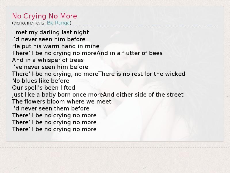 А как ты думаешь, о чем песня "No Crying No More" ?