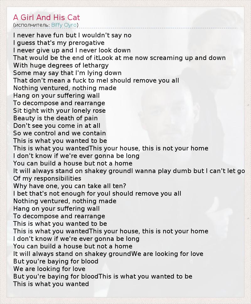 А как ты думаешь, о чем песня "A Girl And His Cat" ?