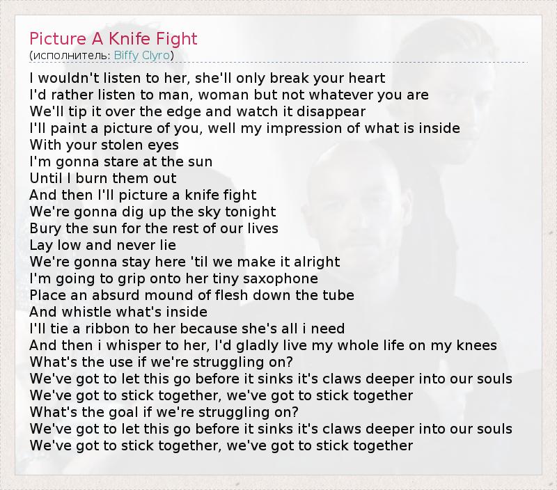 А как ты думаешь, о чем песня "Picture A Knife Fight" ?