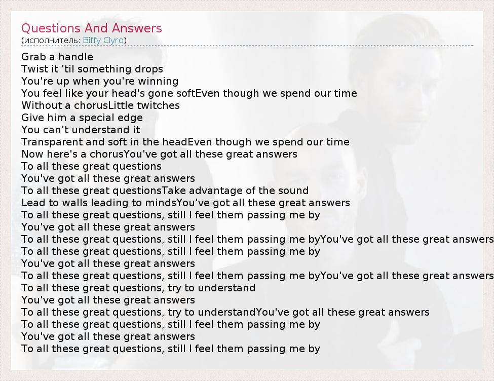 А как ты думаешь, о чем песня "Questions And Answers" ?