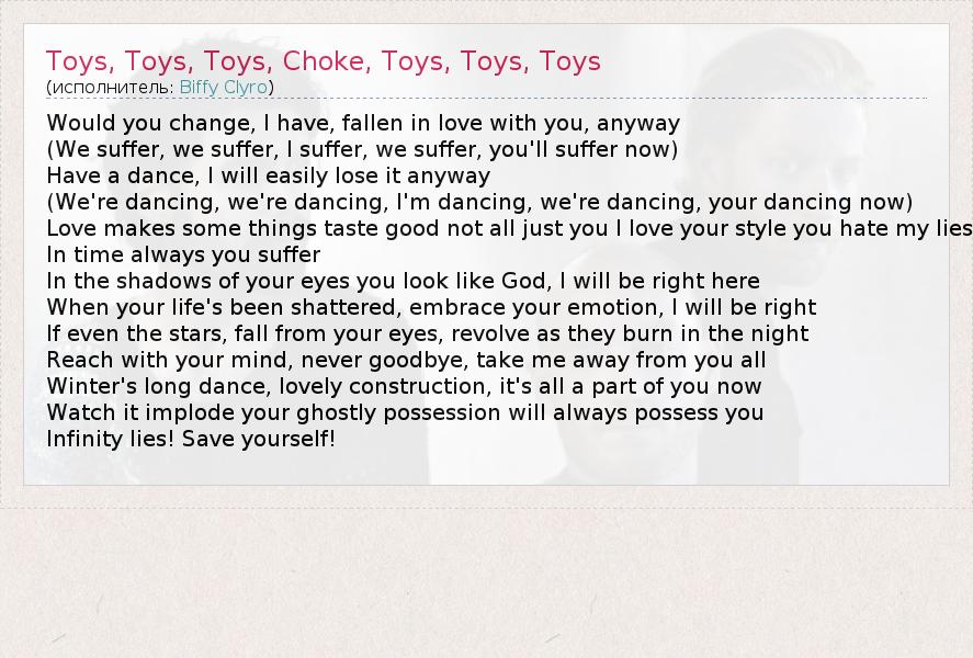 А как ты думаешь, о чем песня "Toys, Toys, Toys, Choke, Toys, Toys, Toys" ?