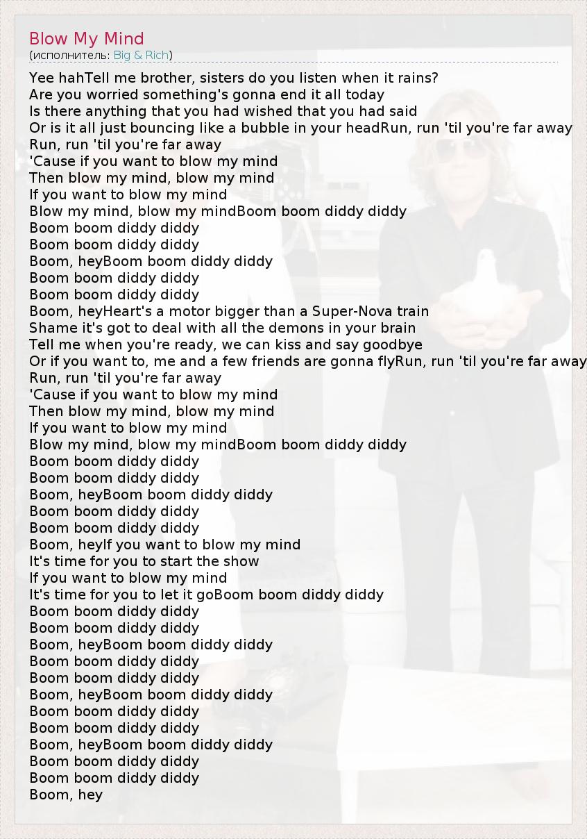 Blow my mind, blow my mindBoom boom diddy diddy