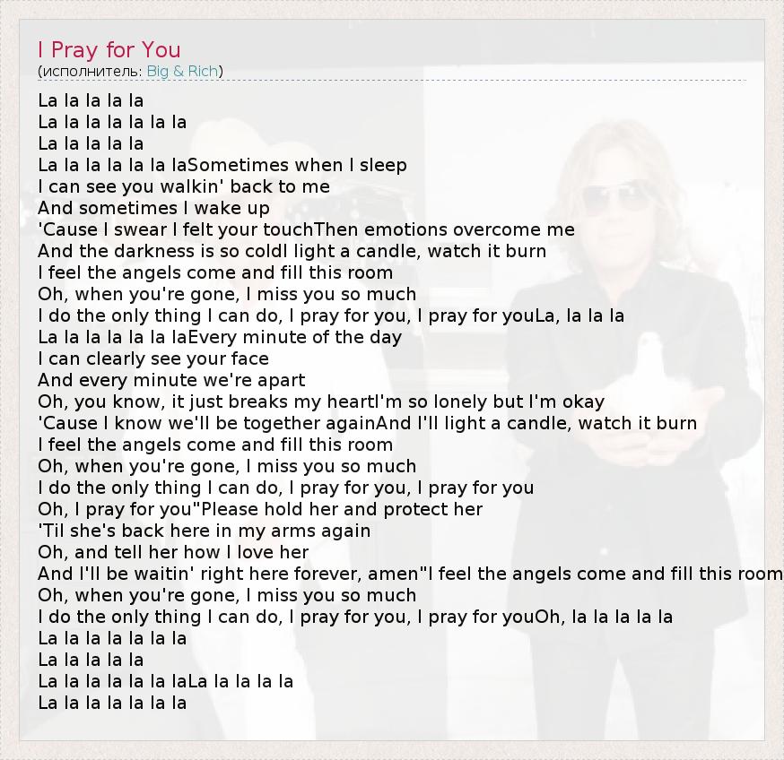 I do the only thing I can do, I pray for you, I pray for youLa, la la la