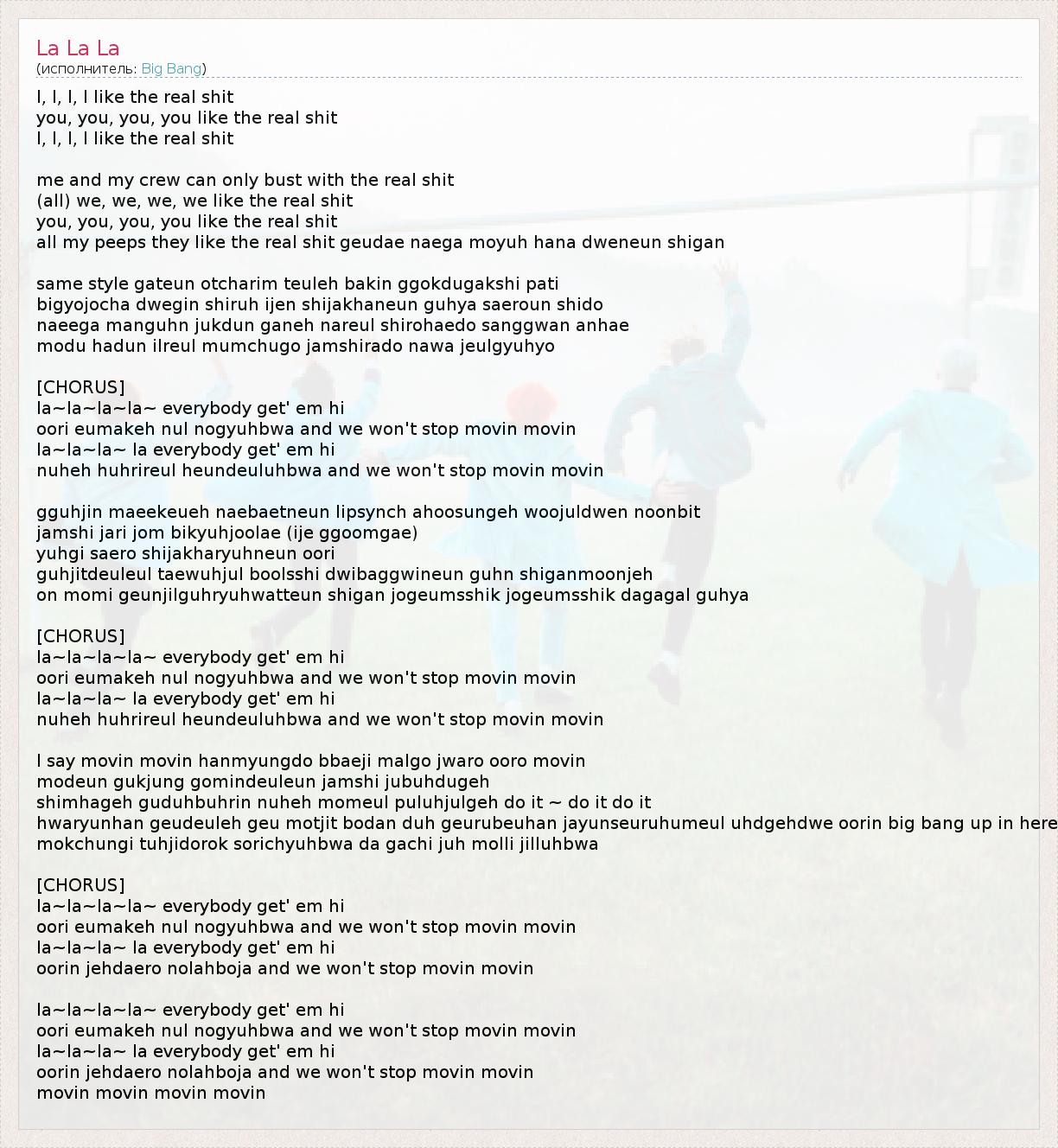 hwaryunhan geudeuleh geu motjit bodan duh geurubeuhan jayunseuruhumeul uhdgehdwe oorin big bang up in here