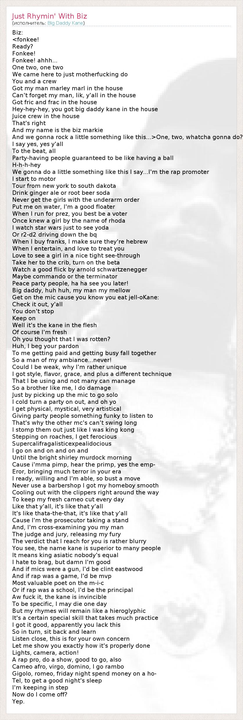 А как ты думаешь, о чем песня "Just Rhymin' With Biz" ?