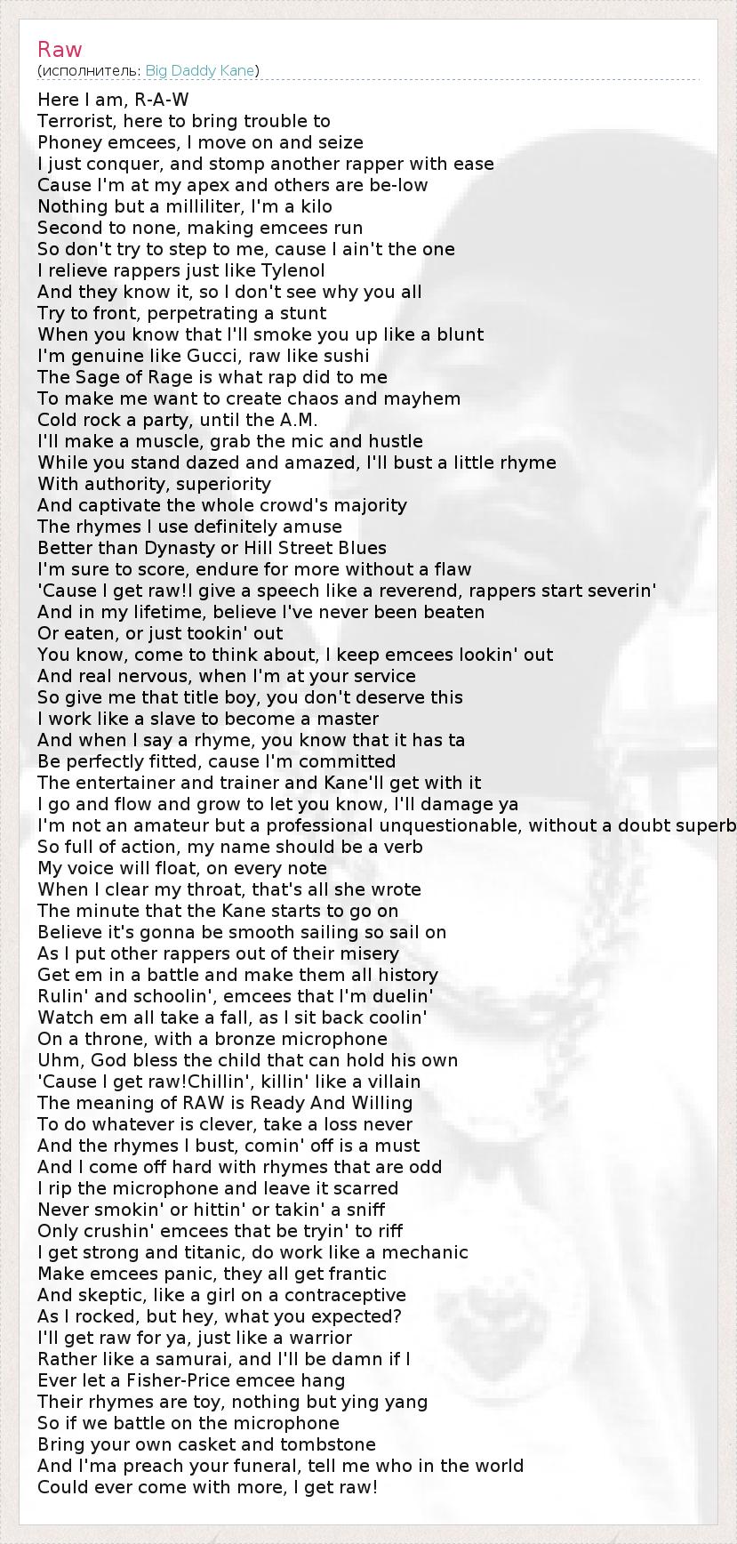 А как ты думаешь, о чем песня "Raw" ?