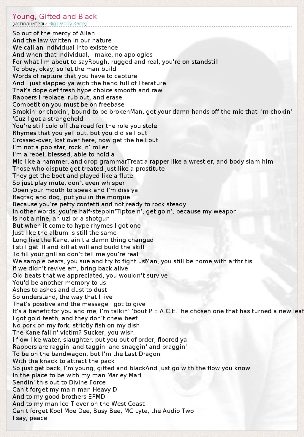 So just get back, I'm young, gifted and blackAnd just go with the flow you know