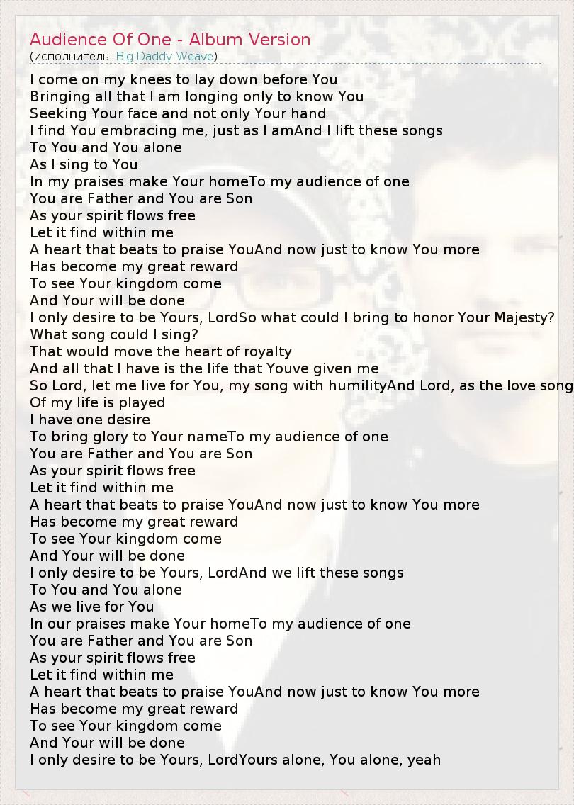 ГлавнаяИсполнителиBig Daddy WeaveAudience Of One - Album Version