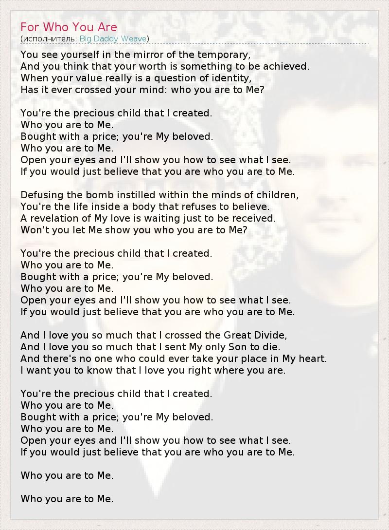 А как ты думаешь, о чем песня "For Who You Are" ?