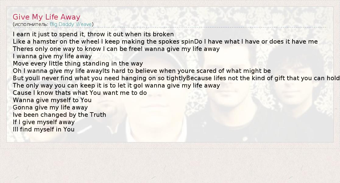 А как ты думаешь, о чем песня "Give My Life Away" ?