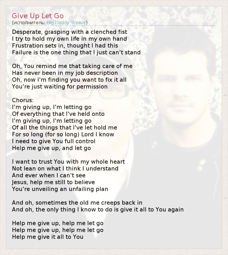 Help me give up, and let go