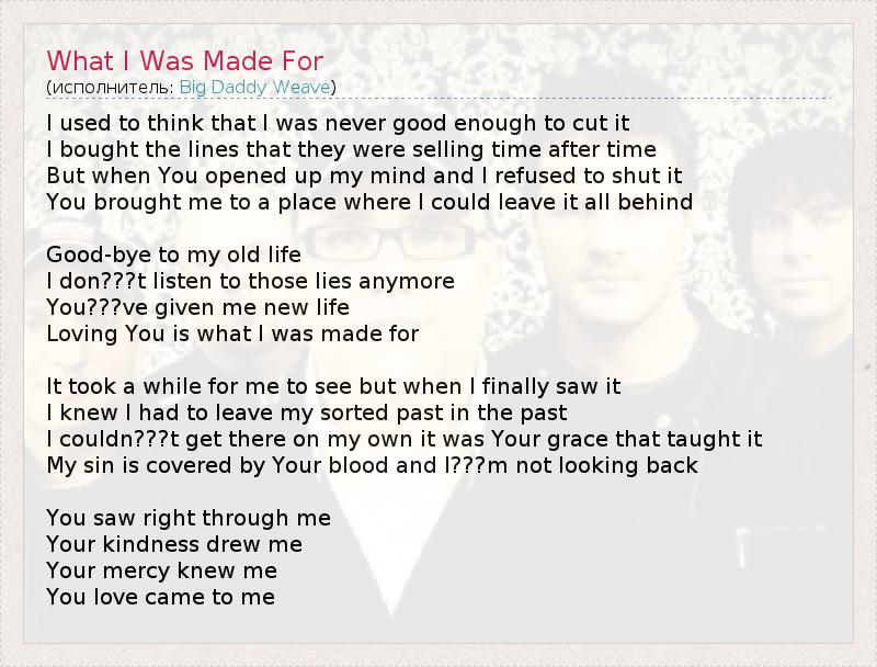 А как ты думаешь, о чем песня "What I Was Made For" ?