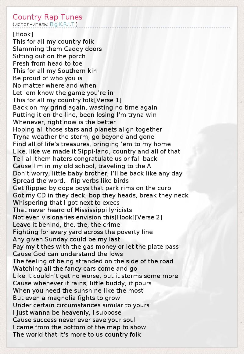 А как ты думаешь, о чем песня "Country Rap Tunes" ?