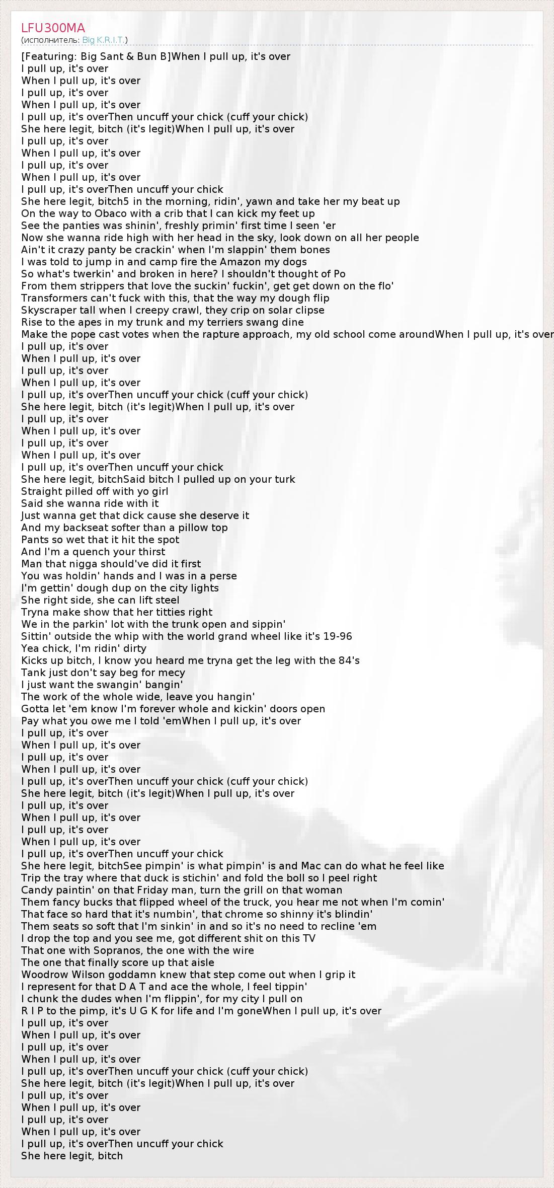А как ты думаешь, о чем песня "LFU300MA" ?