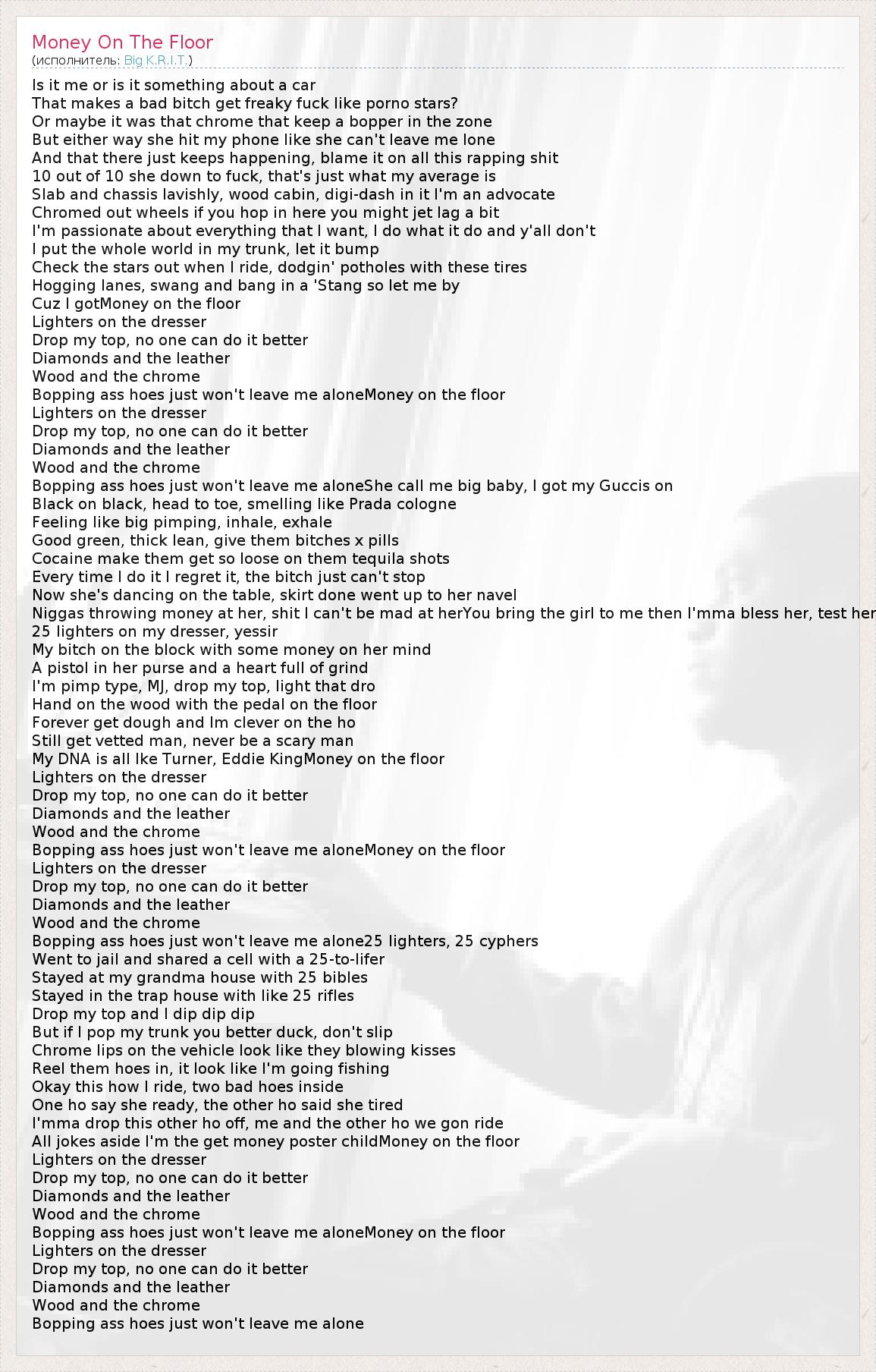 А как ты думаешь, о чем песня "Money On The Floor" ?