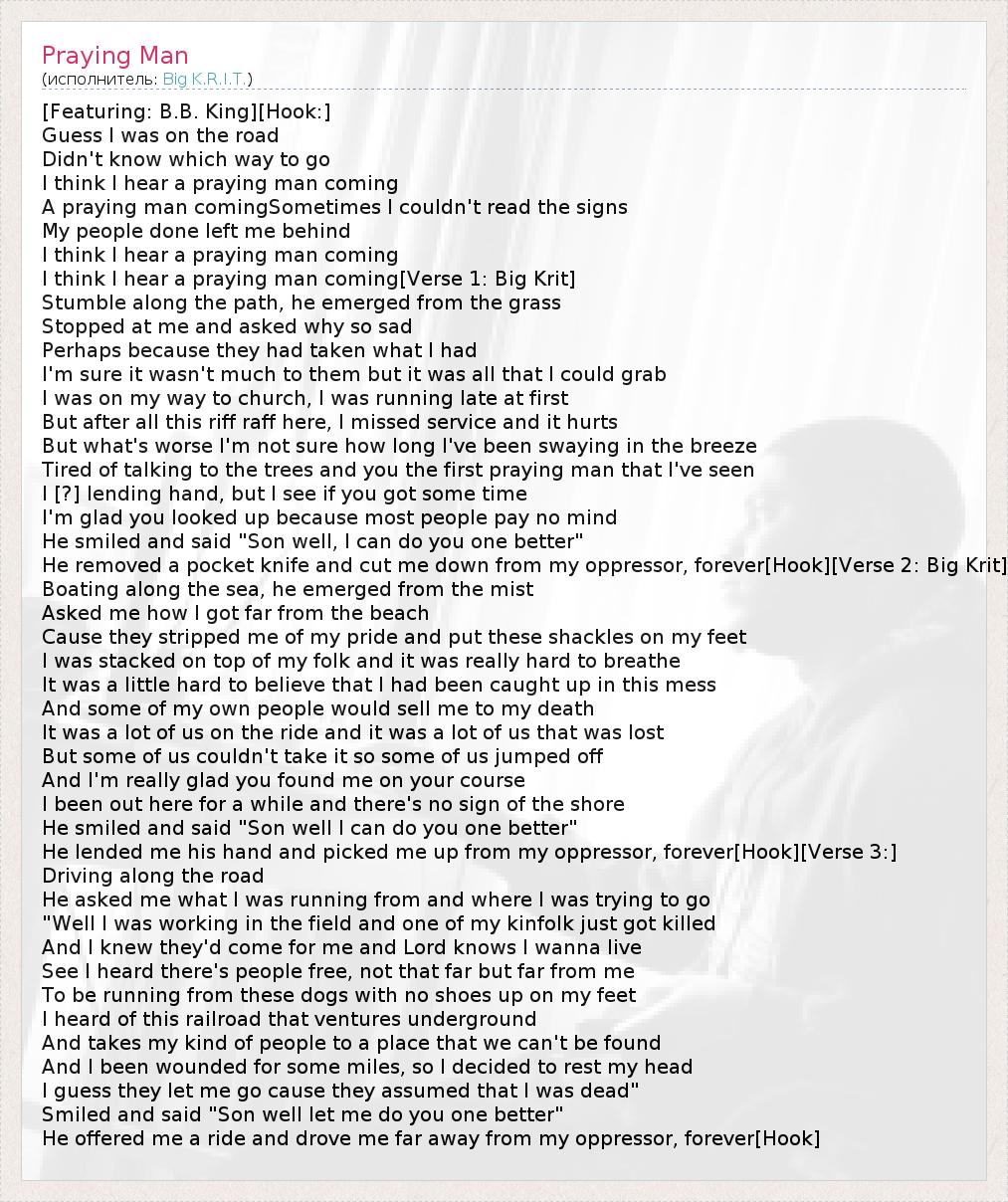 I think I hear a praying man coming[Verse 1: Big Krit]