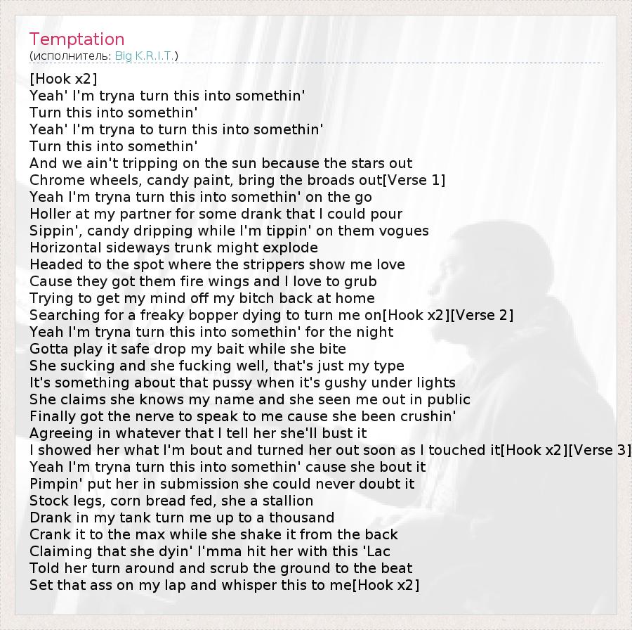 Searching for a freaky bopper dying to turn me on[Hook x2][Verse 2]