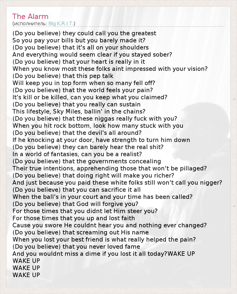 Это интересно:Justin Scott (родился 26 августа 1986 г.), более известный под псевдонимом Big K.R.I.T. - американский рэпер и продюссер из Меридиэна, Миссисипи.В июне 2010 г. Big K.R.I.T. выпустил альбом "K.R.I.T. Wuz Here", который получил положительные отзывы. В том же месяце бывший президент G-Unit Records и нынешний старший вице-президент по артистам и репертуару Def Jam Recordings Sha Money XL подписал с ним контракт как с одним из его главных... продолжение