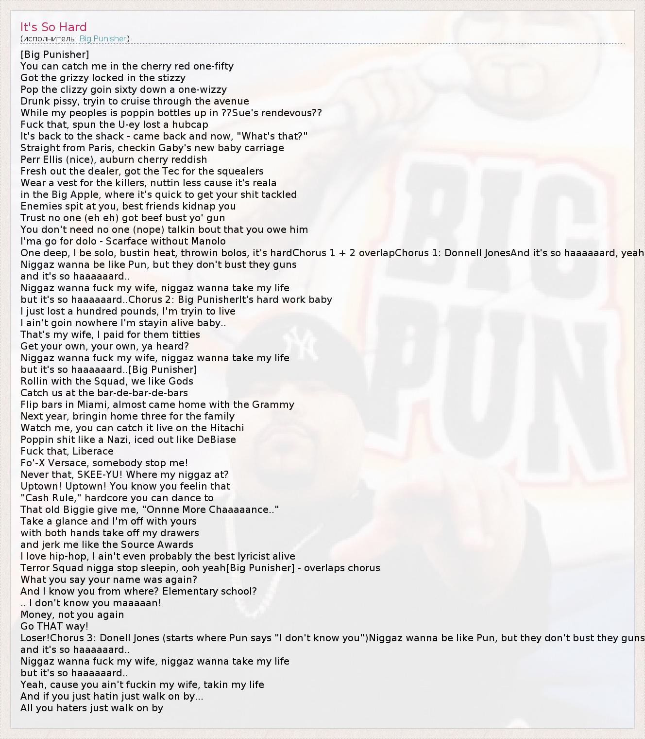 but it's so haaaaaard..Chorus 2: Big PunisherIt's hard work baby