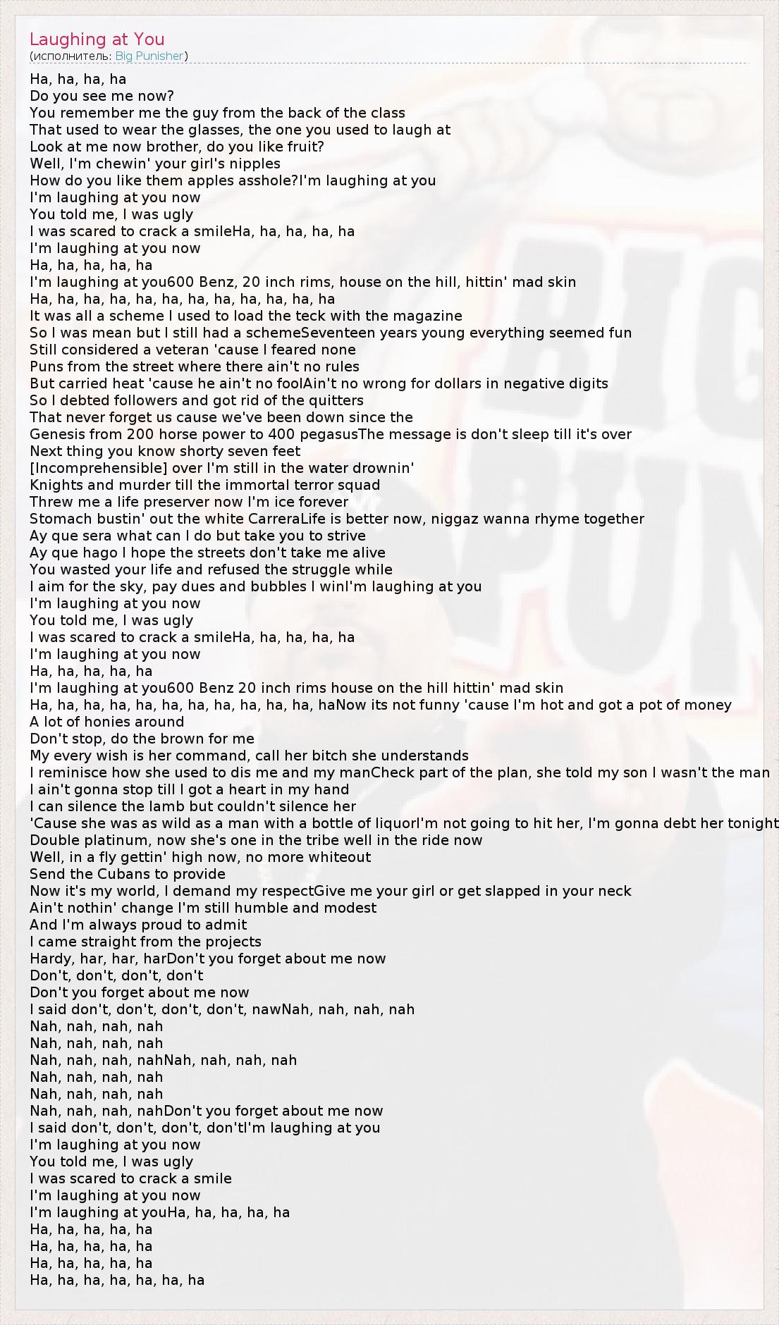А как ты думаешь, о чем песня "Laughing at You" ?