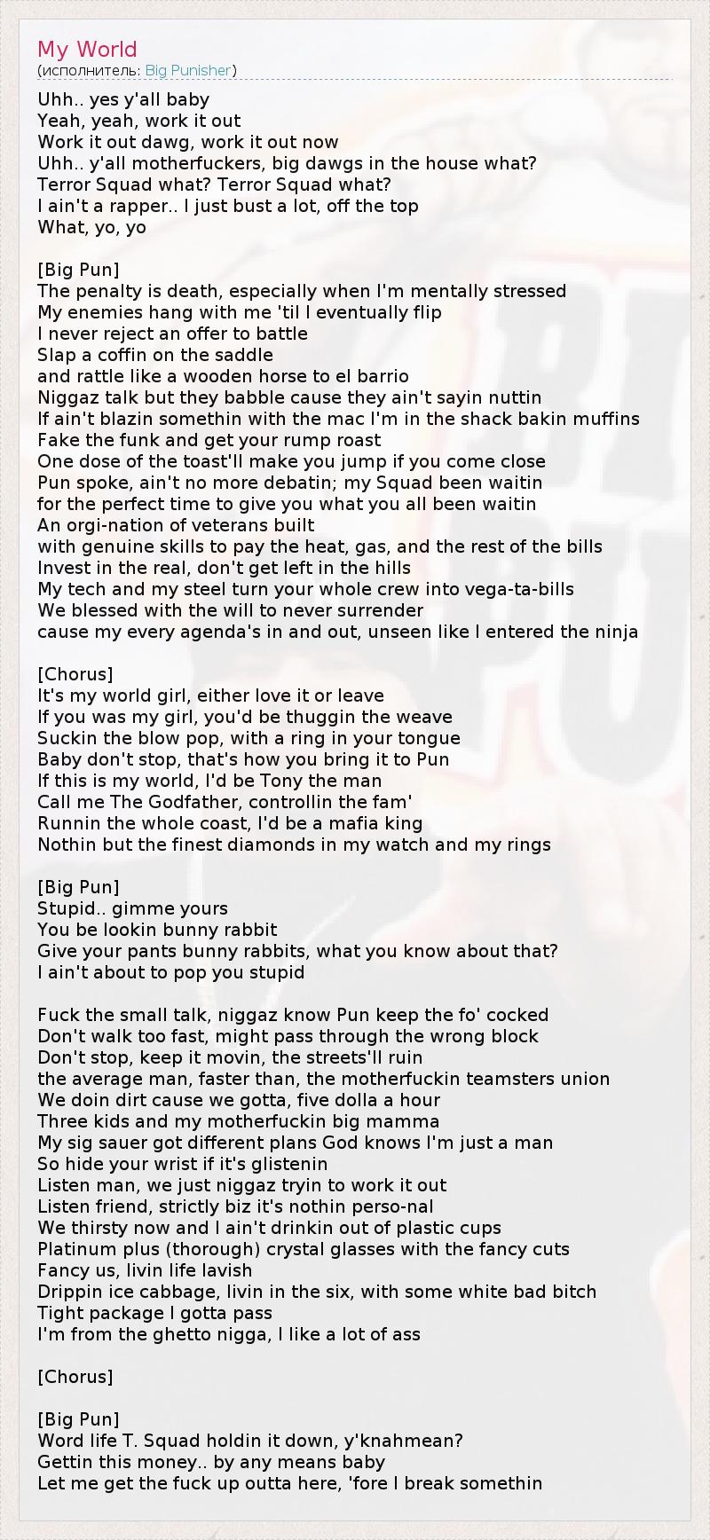 Это интересно:Christofer Lee Rios a.k.a Big Pun родился 10 ноября 1971 года в Южном Бронксе (Нью-Йорк), в семье пуэрториканцев. Интерес к хип-хопу и брейкдансу (да-да, Пан не всегда был таким здоровяком) возник у парня в 15 лет, под впечатлением от выступлений Crazy Legs и Rock Steady Crew. Тусуясь с друзьями по школе, решено было создать собственную рэп-группу, получившую название The Full A Clips Crew. Именно тогда, в 1989 году Кристофер берет себе... продолжение