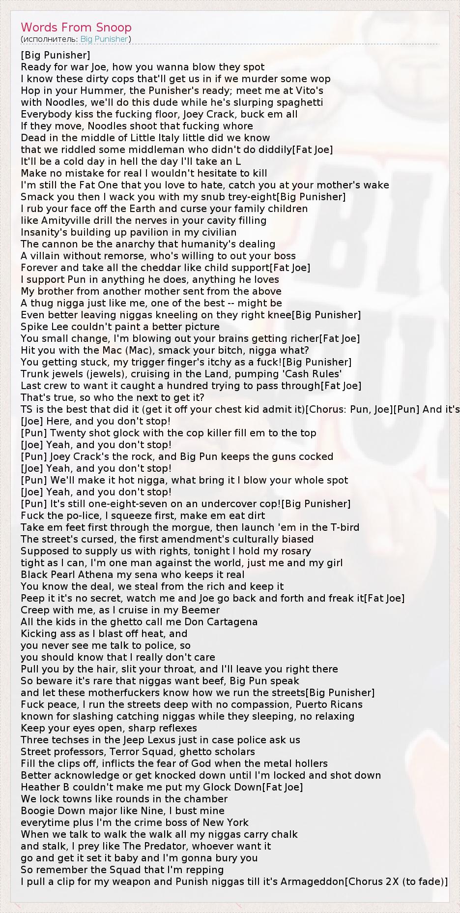 А как ты думаешь, о чем песня "Words From Snoop" ?