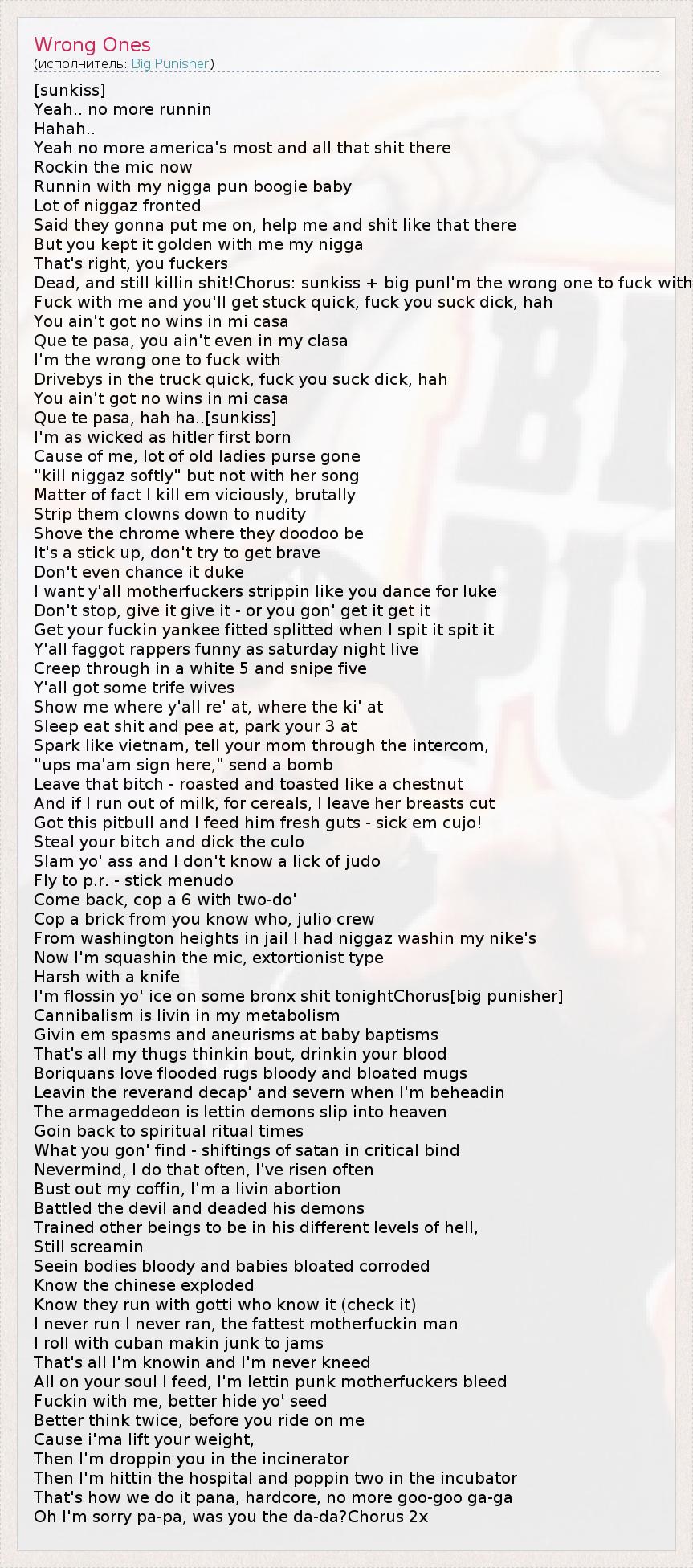 Dead, and still killin shit!Chorus: sunkiss + big punI'm the wrong one to fuck with