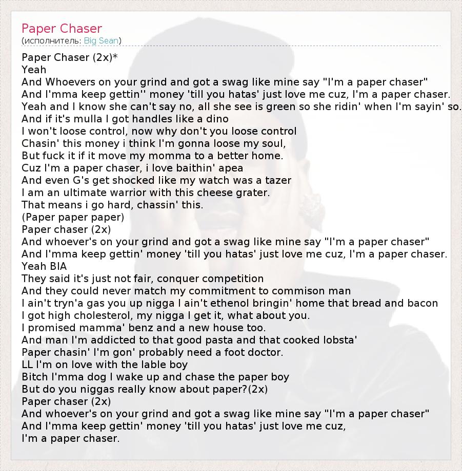 А как ты думаешь, о чем песня "Paper Chaser" ?