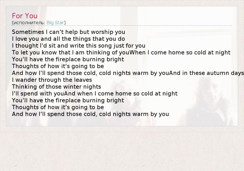 And how I'll spend those cold, cold nights warm by youAnd in these autumn days