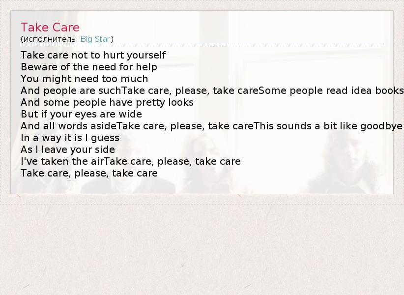 And all words asideTake care, please, take careThis sounds a bit like goodbye