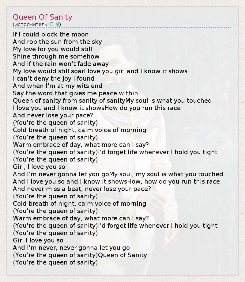 (You're the queen of sanity)Queen of Sanity