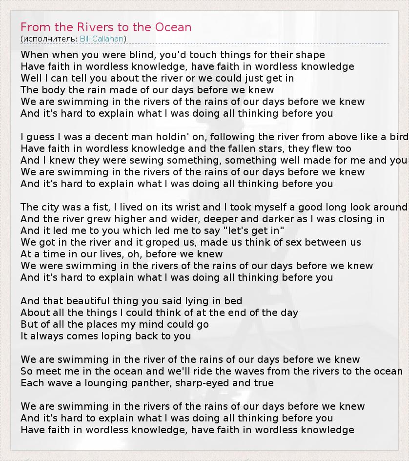 А как ты думаешь, о чем песня "From the Rivers to the Ocean" ?