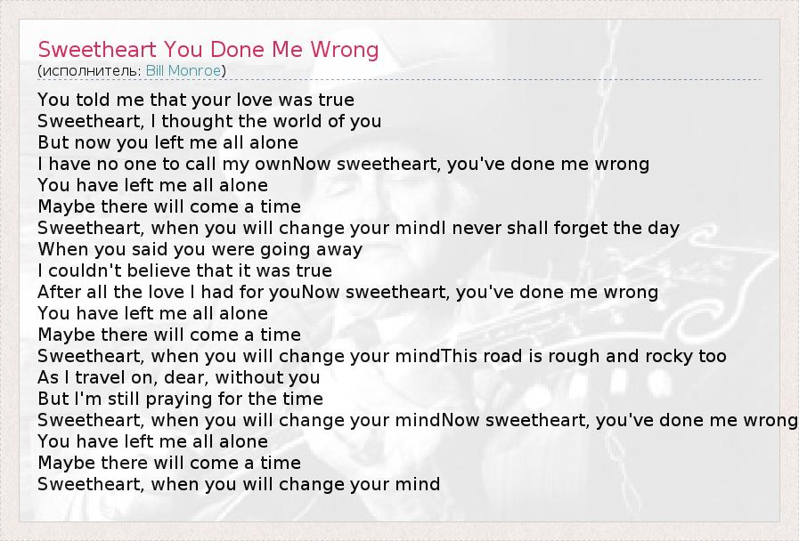А как ты думаешь, о чем песня "Sweetheart You Done Me Wrong" ?