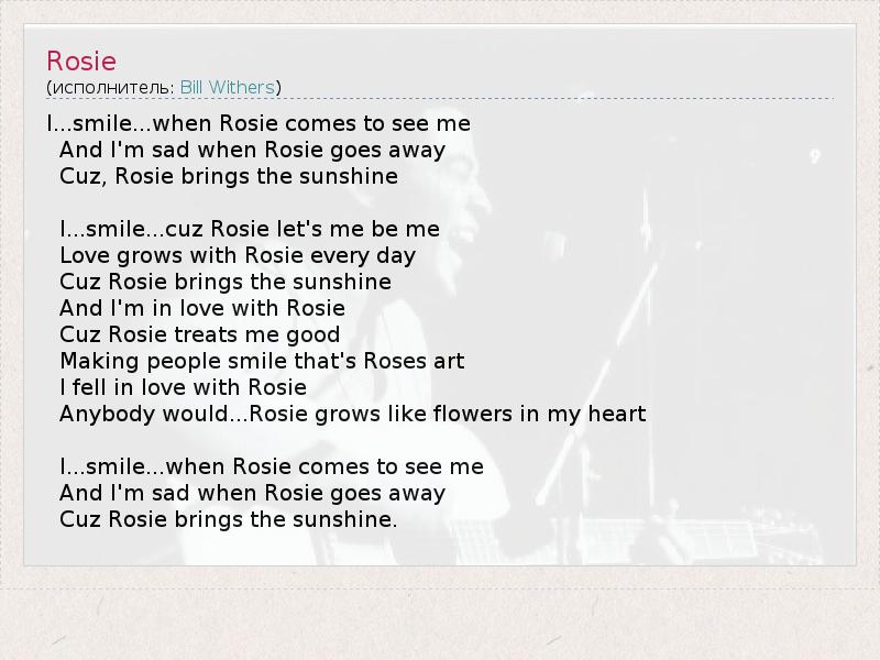 Это интересно:Уильям Гаррисон, он же Билл Уизерс-младший (род. 4 июля 1938) афро-американский исполнитель и автор песен 70-х – начала 80-х годов 20 века. Наиболее известны его песни "Lean On Me", " Ain't No Sunshine", "Use Me", "Just The Two Of Us", "Lovely Day" и "Grandma's Hands". Билл был младшим ребенком в семье из шести детей. Он рос близ местечка Бекли, Западная Вирджиния. Мальчику было тринадцать лет, когда... продолжение