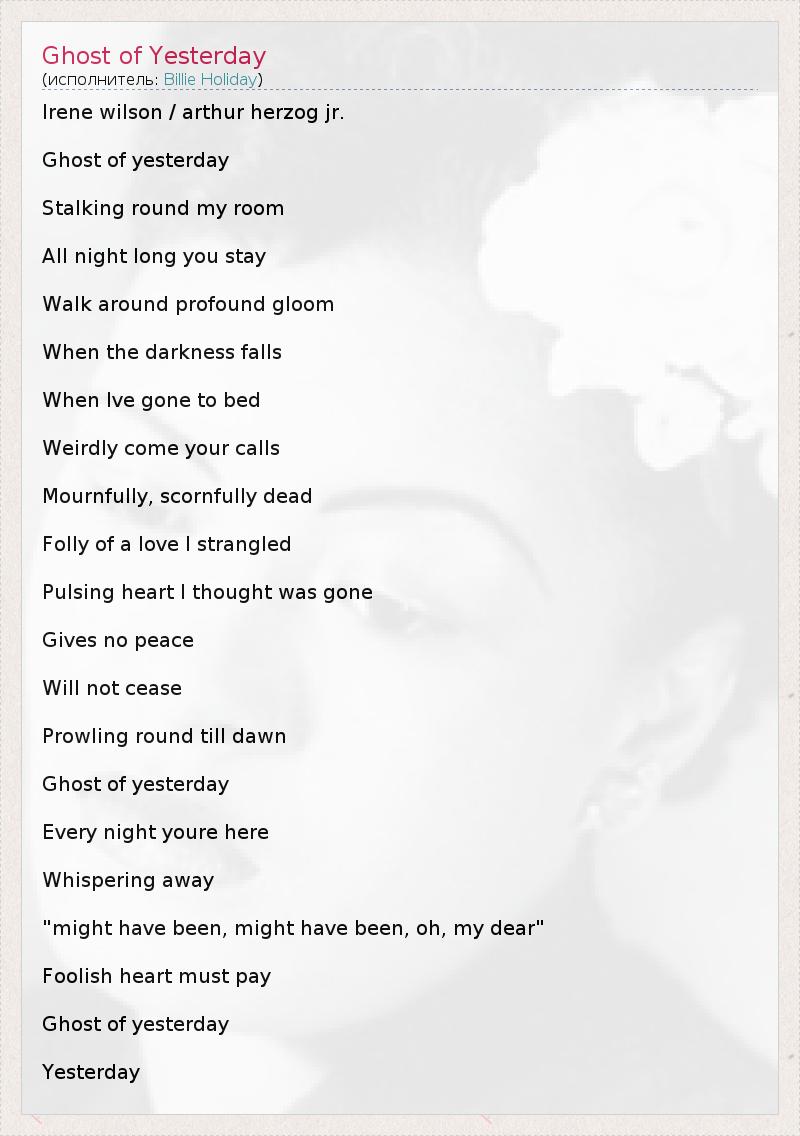 А как ты думаешь, о чем песня "Ghost of Yesterday" ?