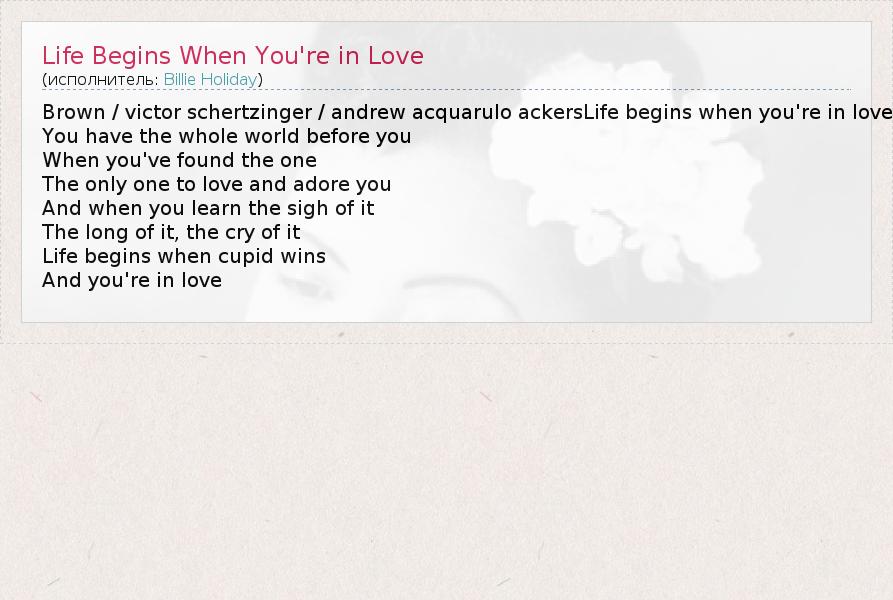 А как ты думаешь, о чем песня "Life Begins When You're in Love" ?